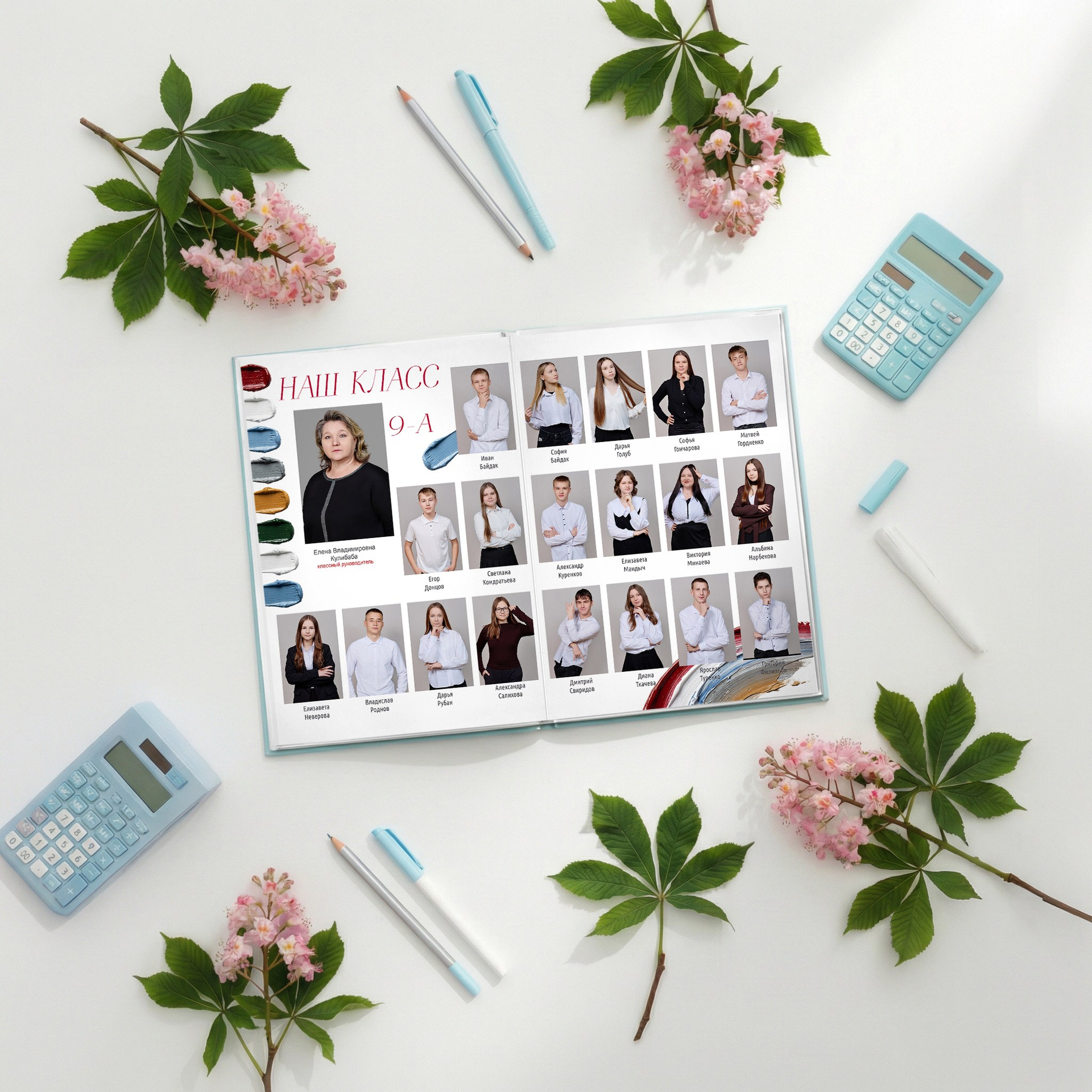 •Портреты всех выпускников в классе с подписями имен и фамилий каждого